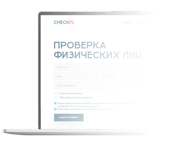 Заполните ФИО, год рождение, серию и номер паспорта и нажмите кнопку «Проверить». Чем больше данных Вы укажите, тем больше информации будет содержаться в отчете.